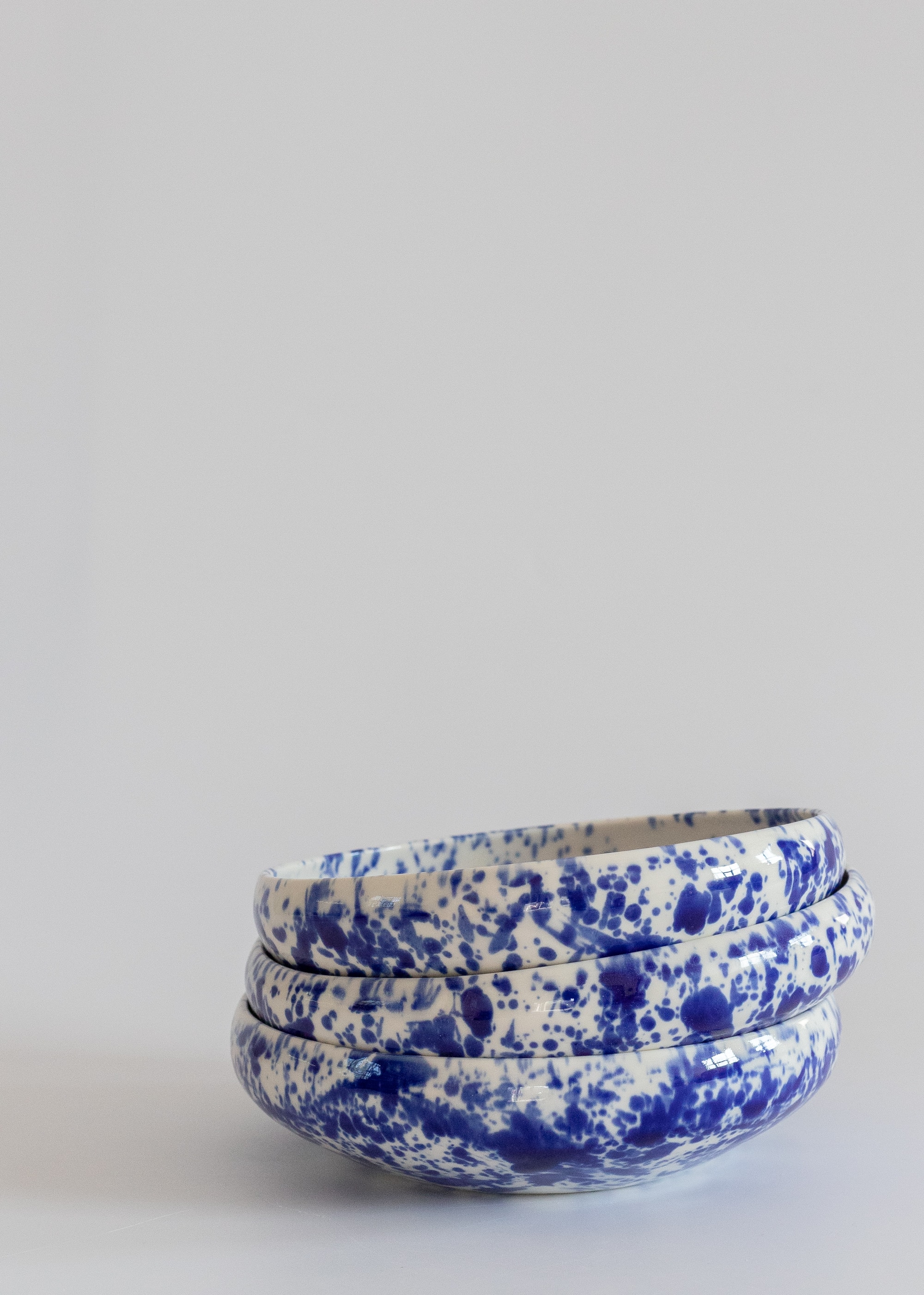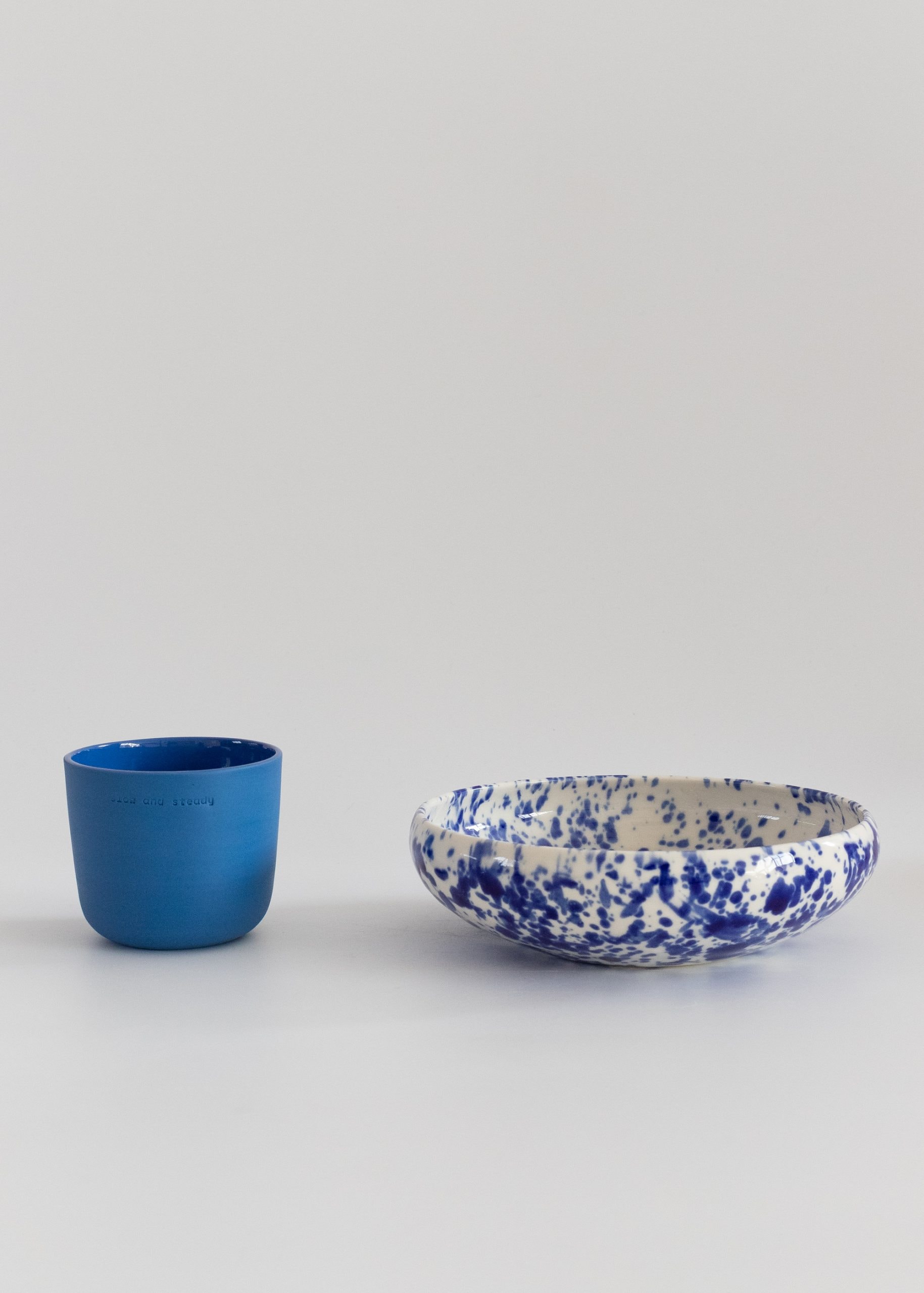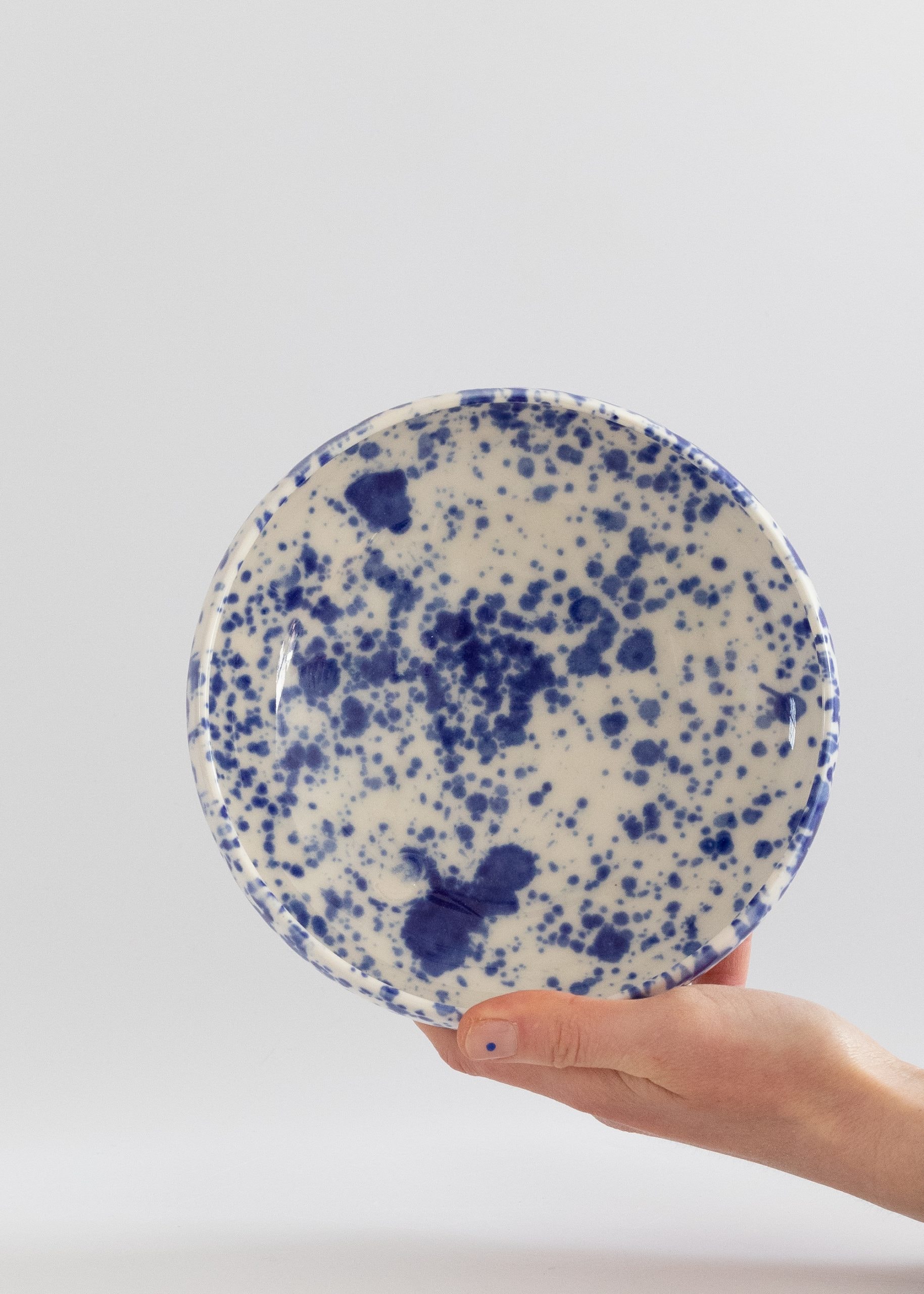 White eye-catching porcelain bowl with cobalt splashes.