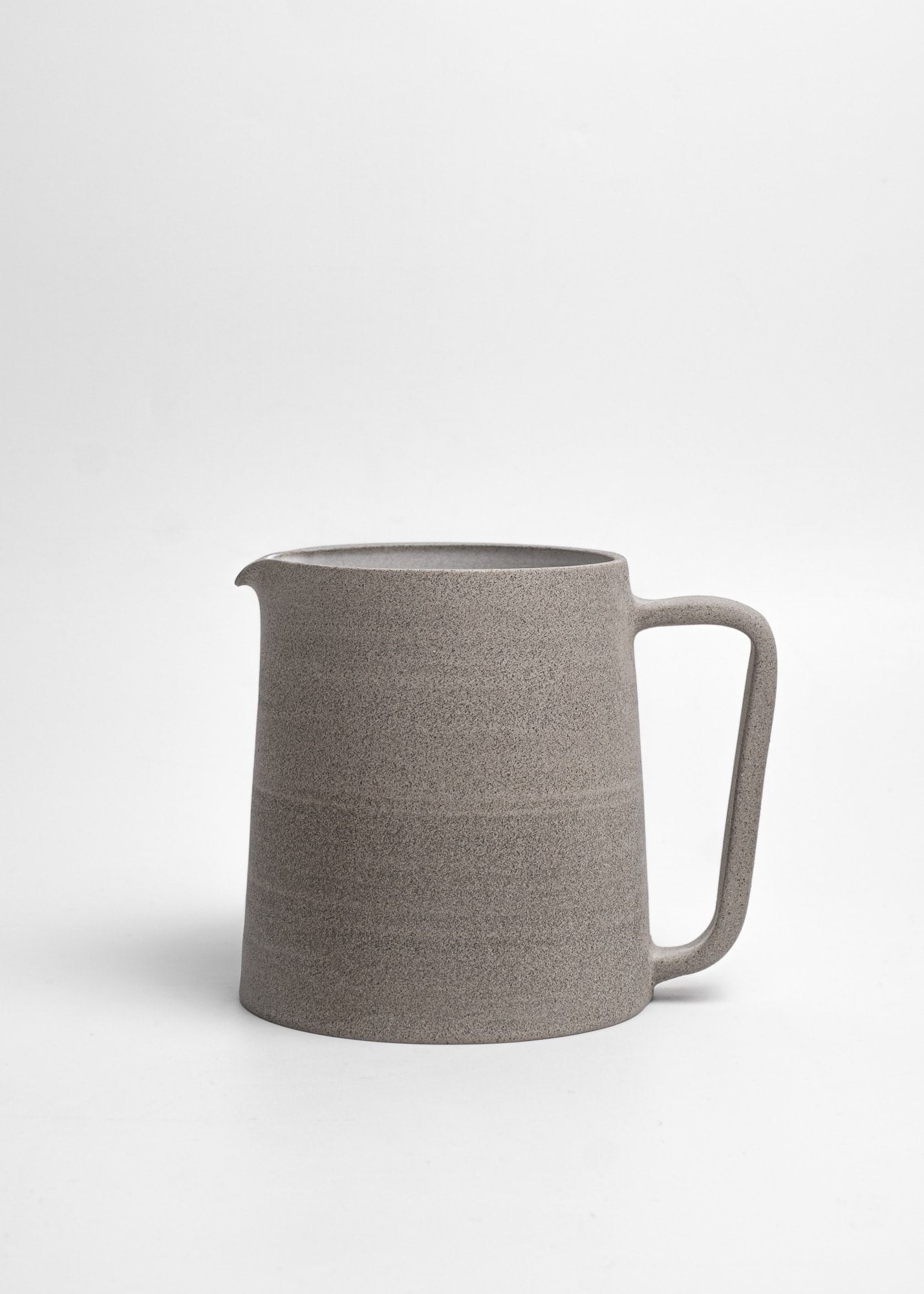 Outside: unglazed matte grey stoneware.