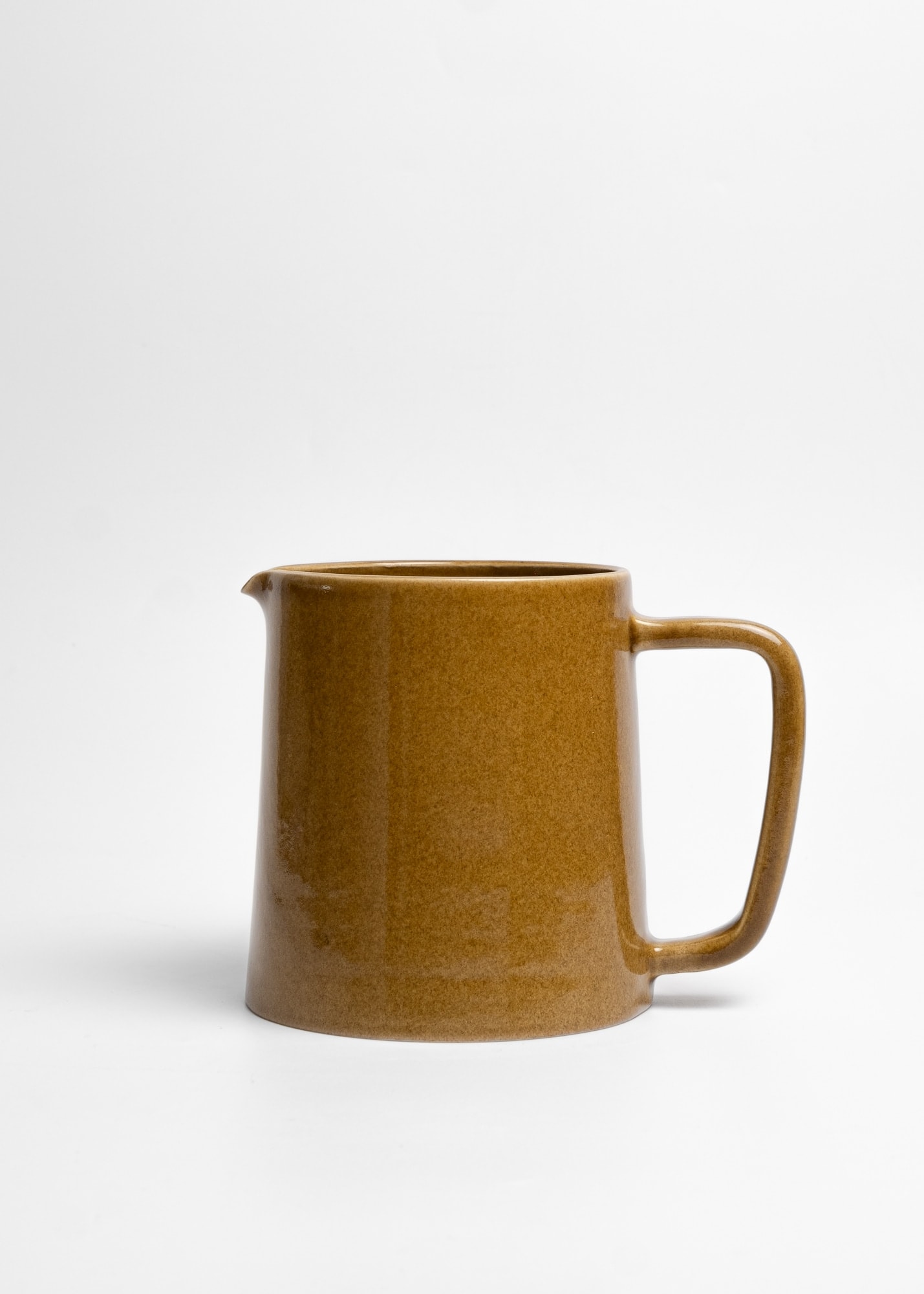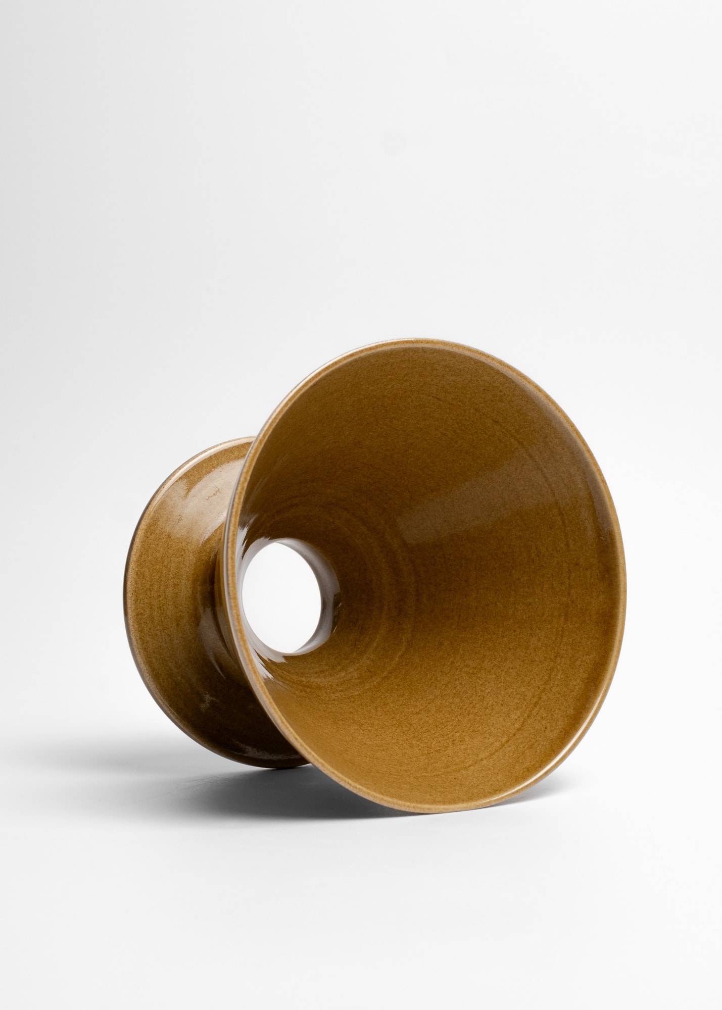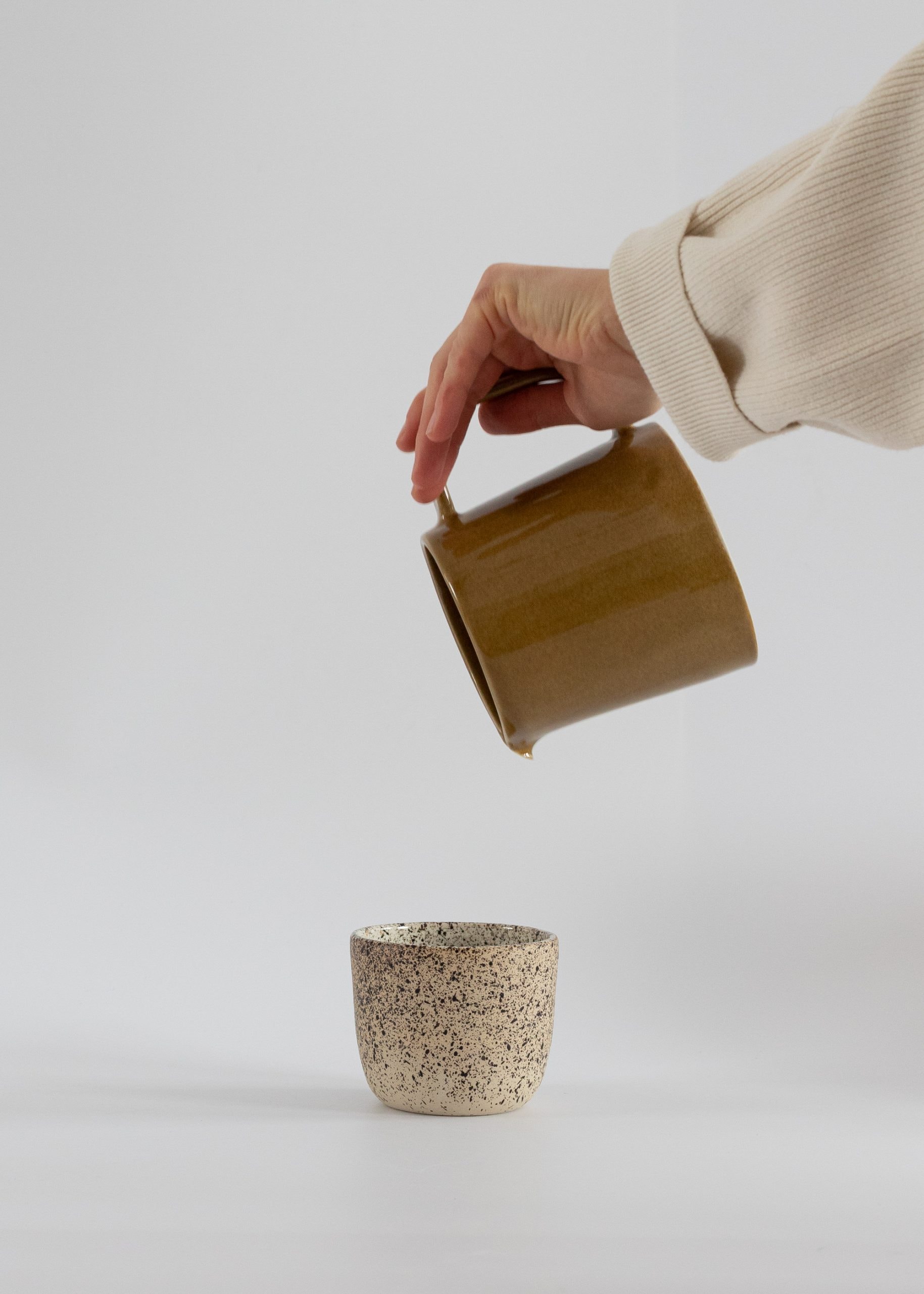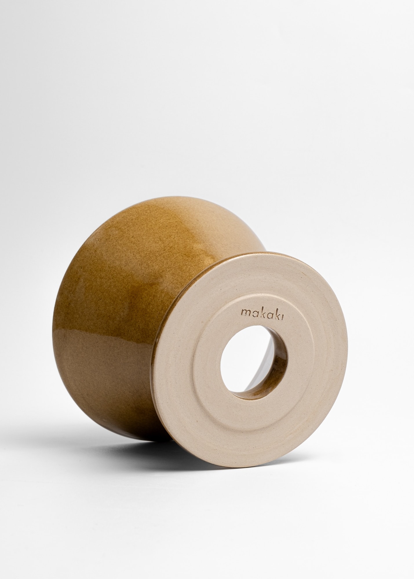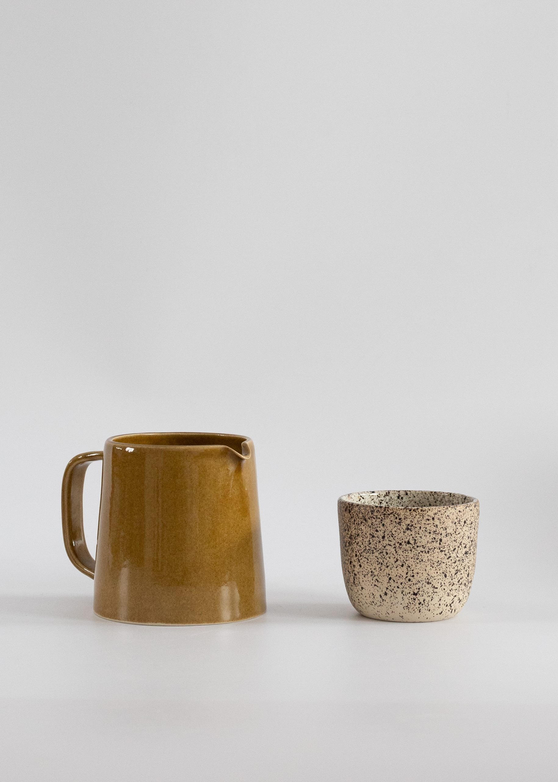 Mustard brown stoneware ceramic pour-over coffee kit.