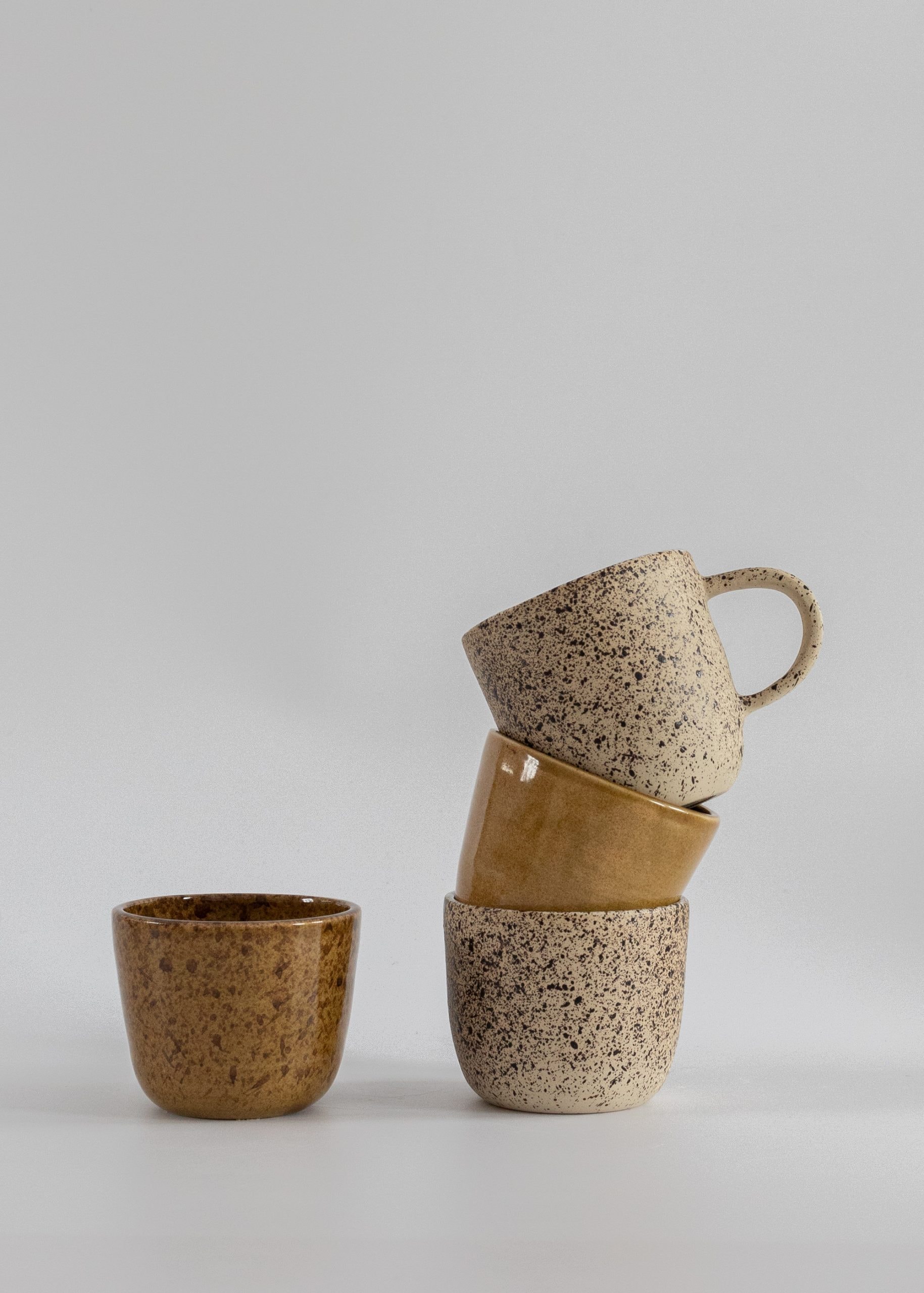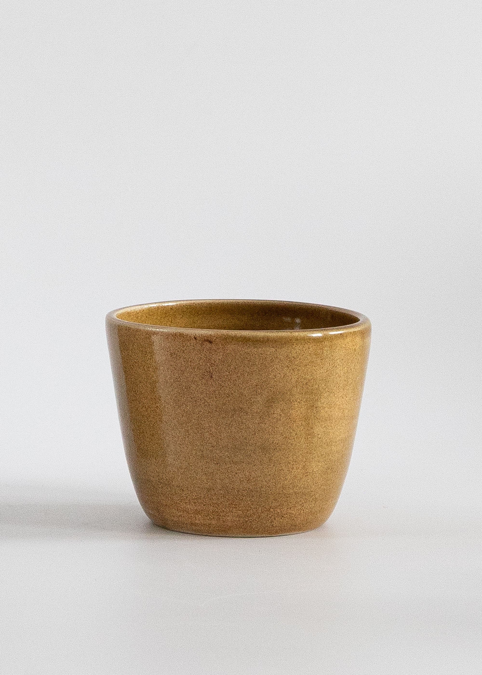 Honeycomb / mustard brown stoneware cup for coffee or tea.
