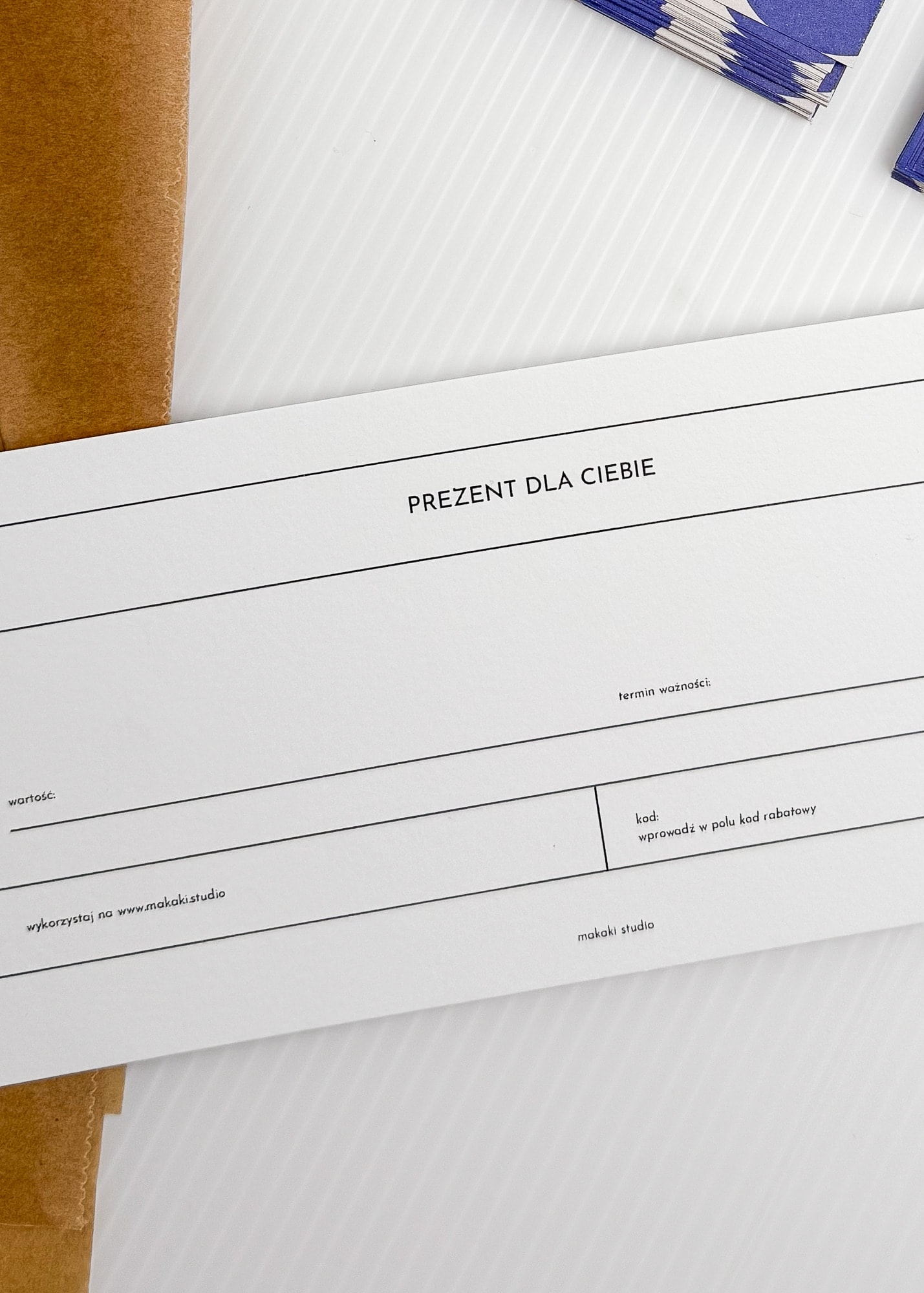 Każdą kartę możemy wypisać zgodnie z Twoja prośbą lub zostawić pustą. W komentarzu do zamówienia podaj nam dane, które powinny się na niej znaleźć (od kogo, dla kogo), możesz dodać też notkę od siebie. Na karcie umieścimy dedykowany kod, który wprowadzony podczas składania zamówienia na naszej stronie internetowej obniży kwotę do zapłaty.